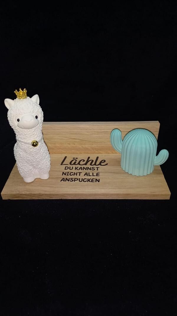 Alpaka auf Holzterrasse
